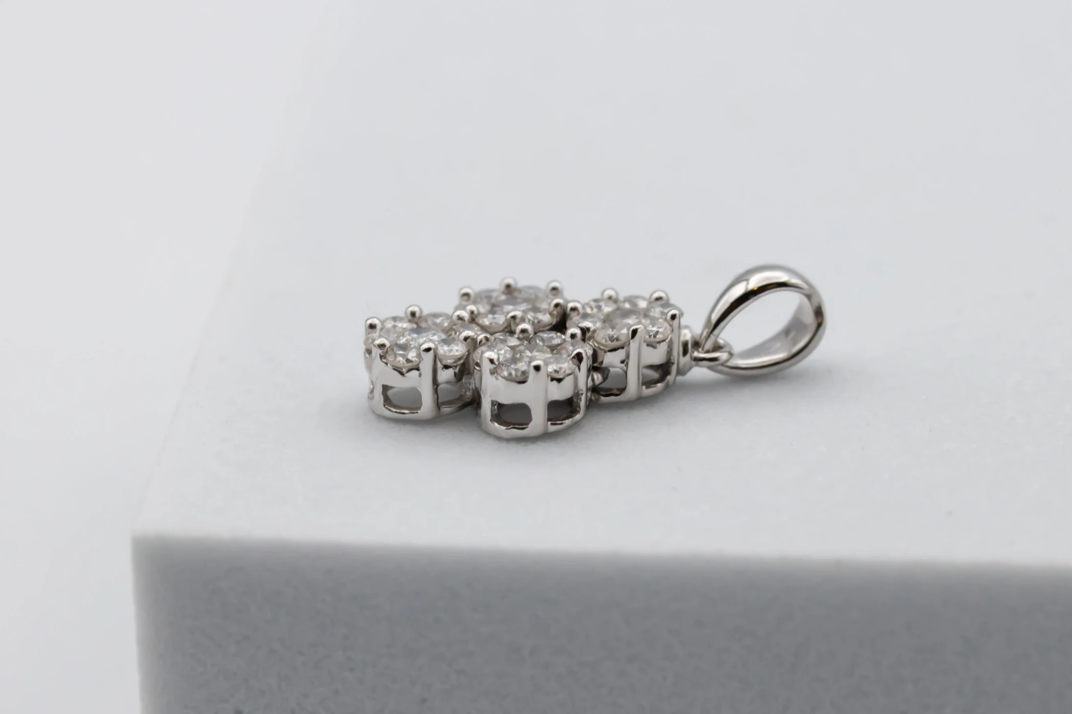 This elegant 14ct white gold jewellery set features a dazzling diamond cluster design, comprising a pendant and matching earrings.