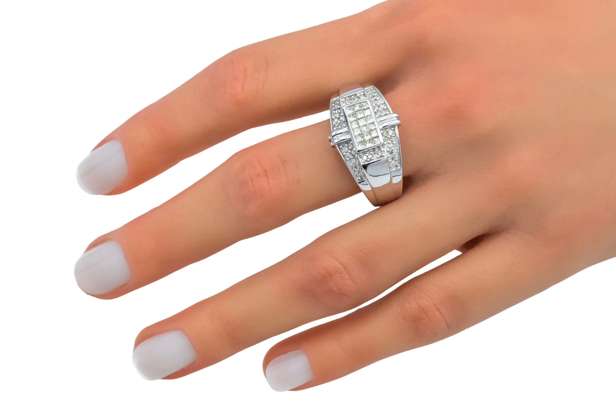 Experience the ultimate in sparkle with this 14ct white gold diamond ring, featuring a breathtaking combination of princess and round cut diamonds set in a luxurious pavé design. Weighing 12g, the ring balances substantial presence with refined sophistication, creating a statement piece that dazzles from every angle.