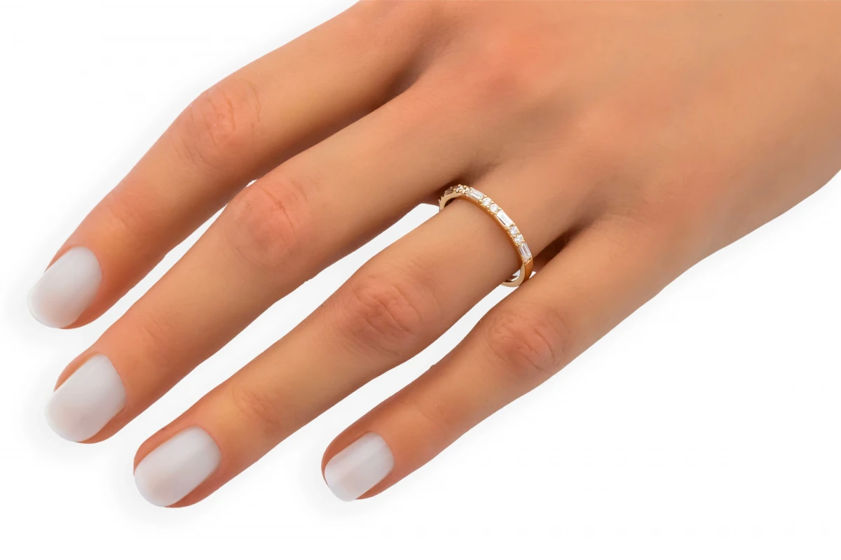 18ct Rose Gold Baguette & Round Diamond Wedding Band 0.66ct