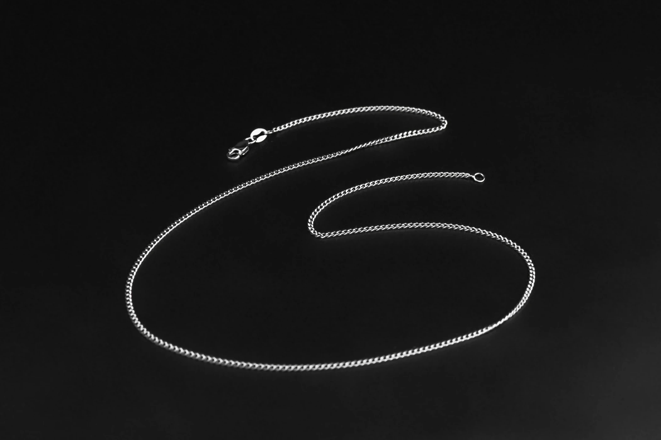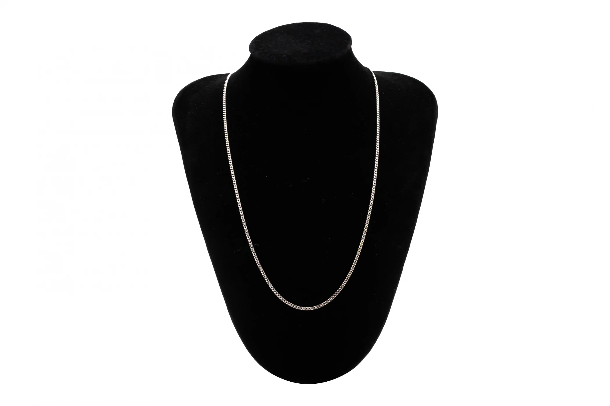 This refined 18ct white gold curb chain features a sleek and polished link design, measuring 1.6mm in width and 17 inches in length.