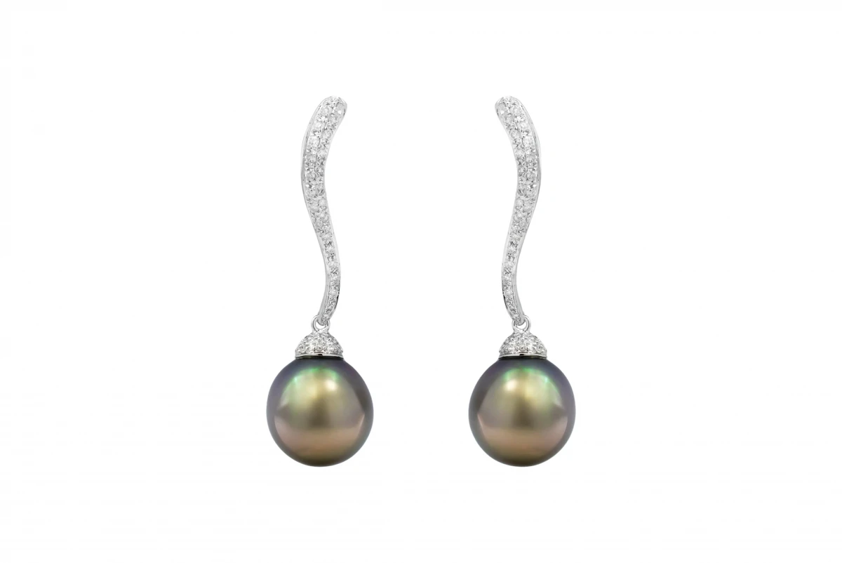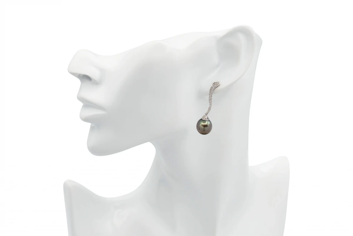 18ct White Gold Diamond & Tahitian Pearls Drop Down Earrings 0.68ct