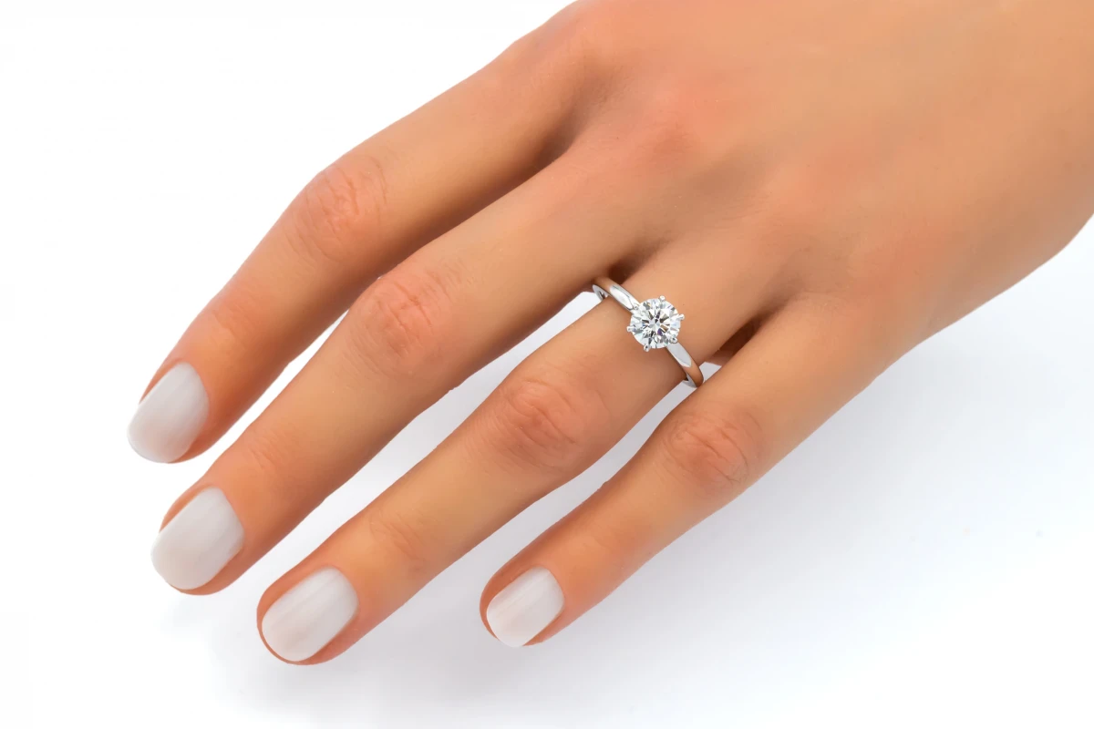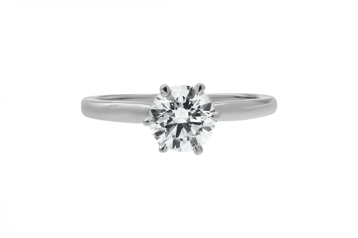 A timeless 18ct white gold lab-grown diamond engagement ring showcasing a 1.00ct brilliant round cut diamond, GIA certified for its exceptional quality.