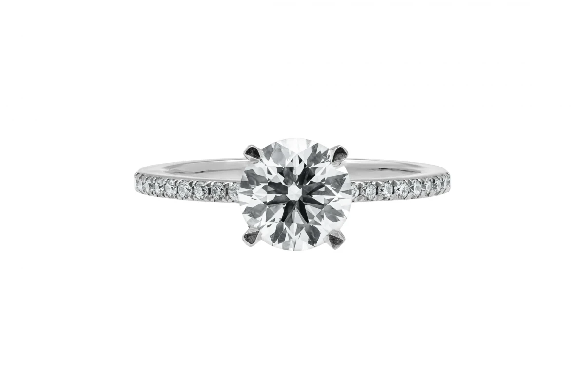 A timeless 18ct white gold lab-grown diamond engagement ring featuring a 1.30ct brilliant round cut centre diamond, surrounded by a 0.14ct diamond mount, bringing the total carat weight to 1.44ct.