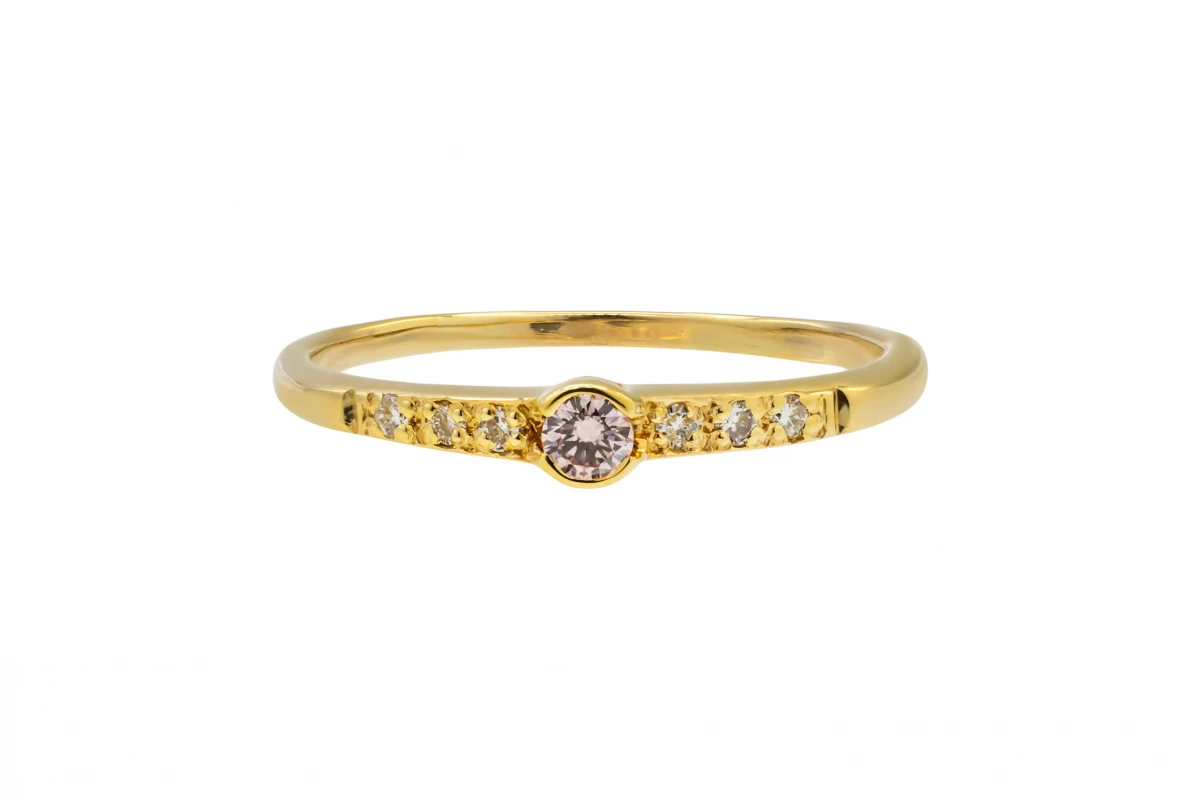 An exquisite and rare pink diamond ring crafted in 18ct yellow gold.