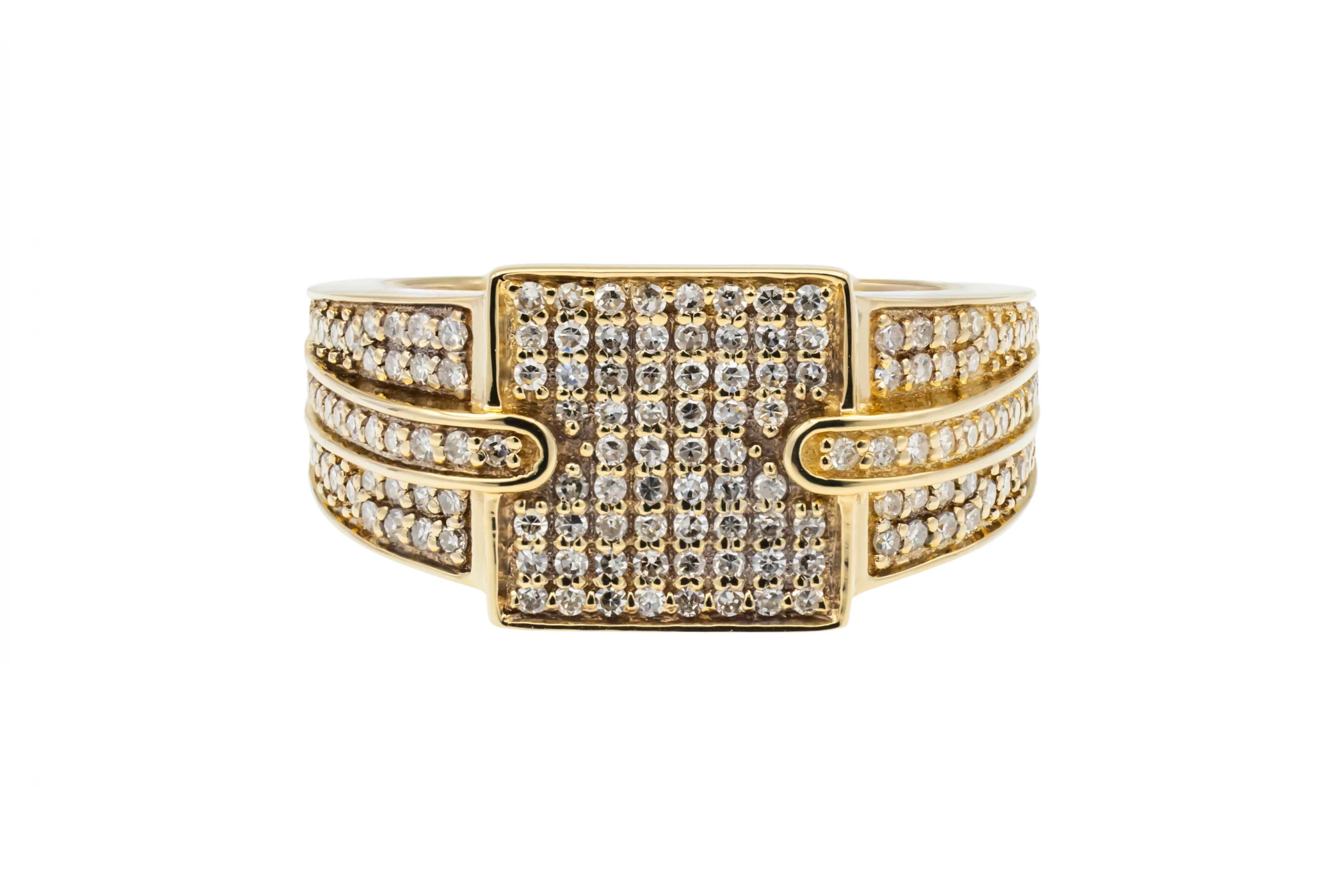 9ct Yellow Gold Square Diamond Mens Ring 0.90ct 5.5g