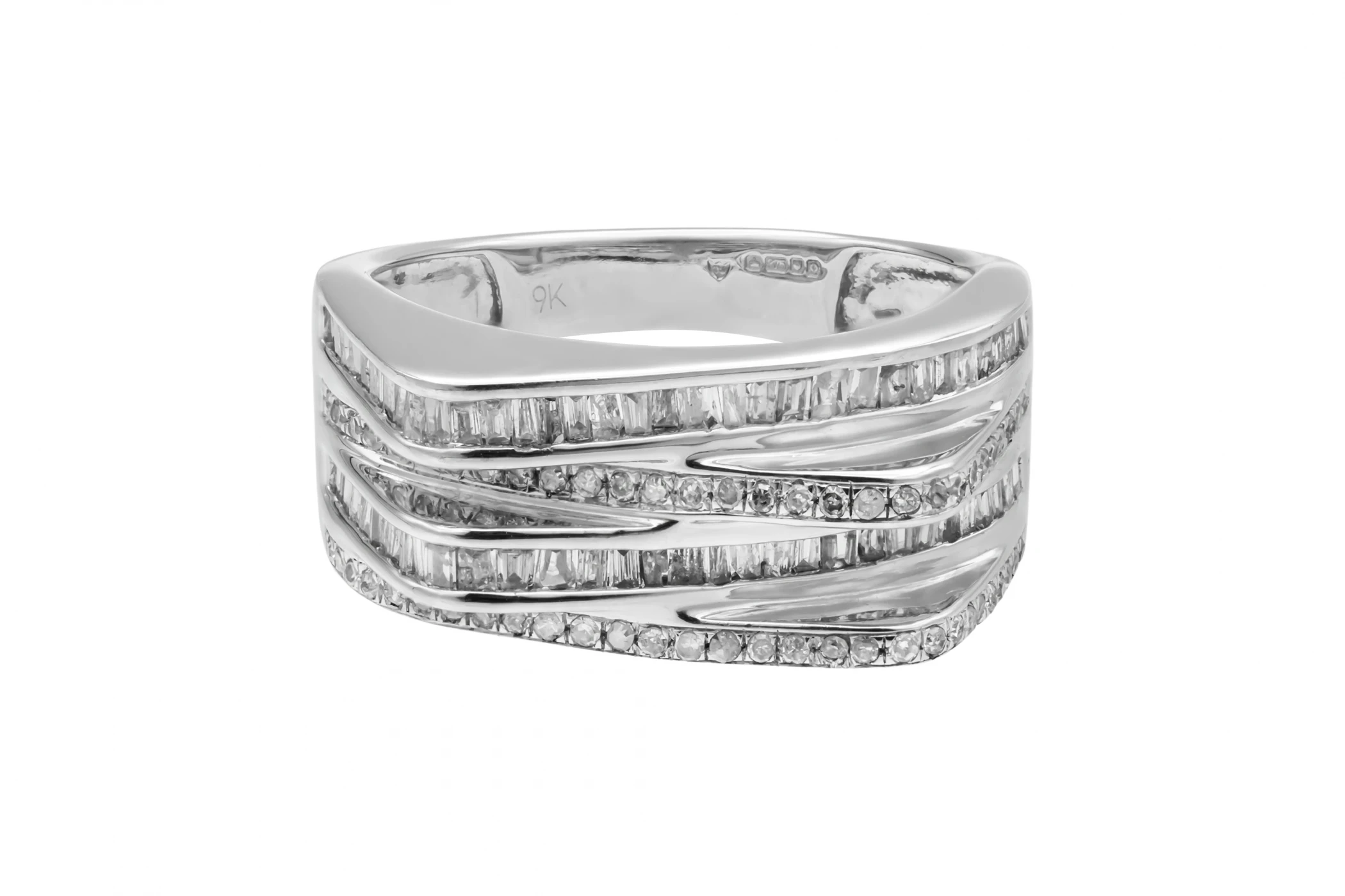 This elegant 9ct white gold ring features a beautiful combination of baguettes and round brilliant cut diamonds totalling 0.88ct.