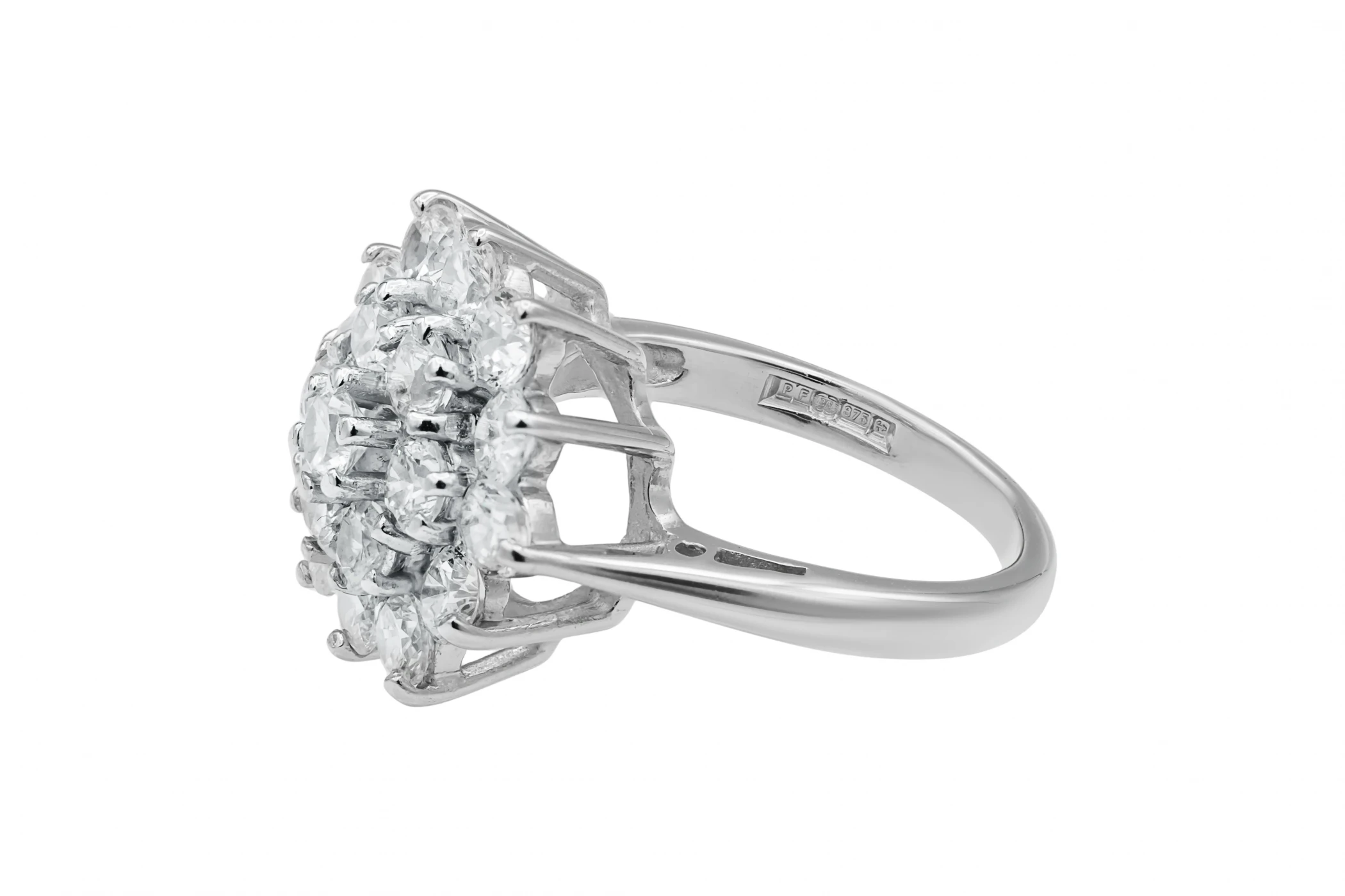 9ct White Gold Cluster Design Diamond Ring 1.17ct 4.7g