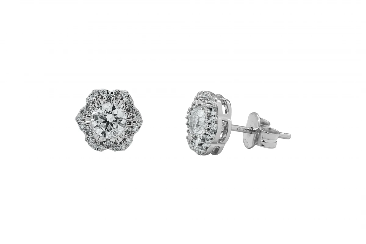 These charming 9ct white gold flower stud earrings feature 1.00 carat of dazzling F colour, VS clarity diamonds, meticulously arranged in a floral design.