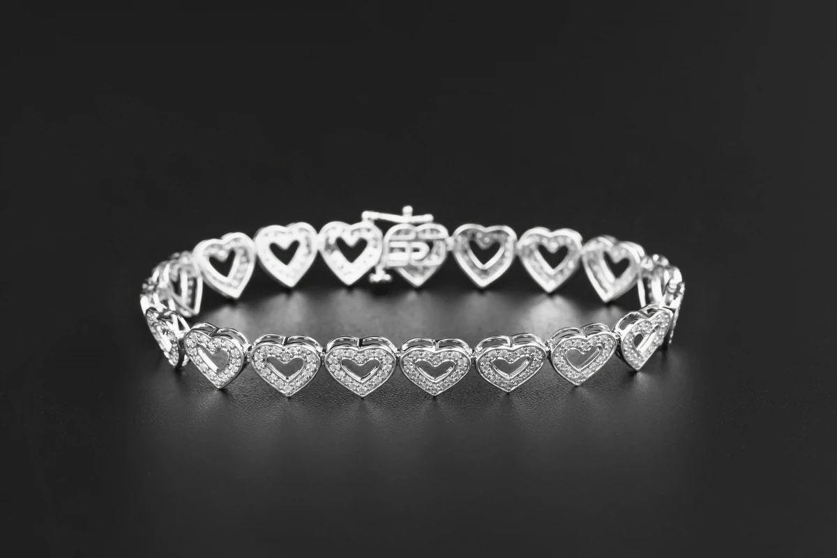 9ct White Gold Diamond Heart Bracelet 2.25ct 11.9g