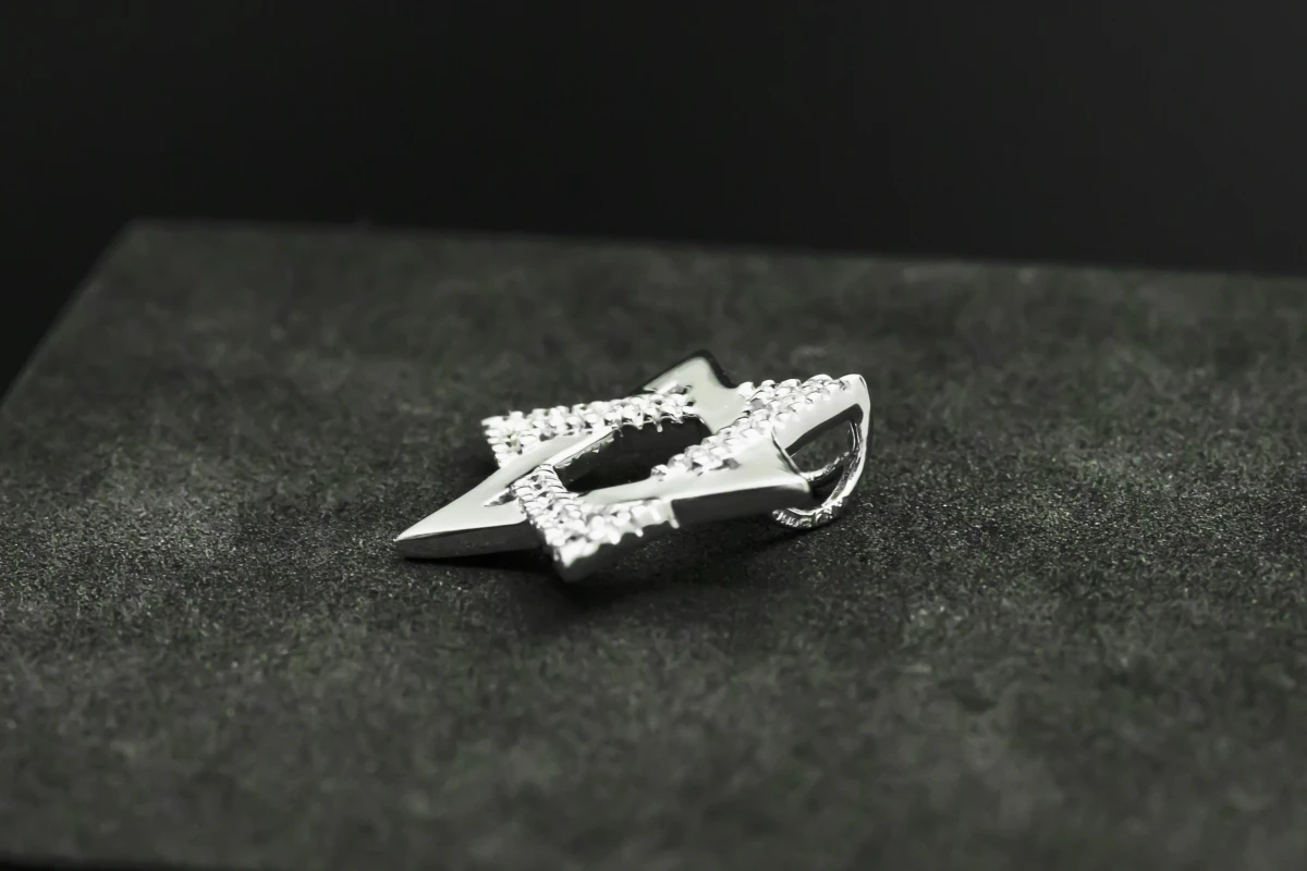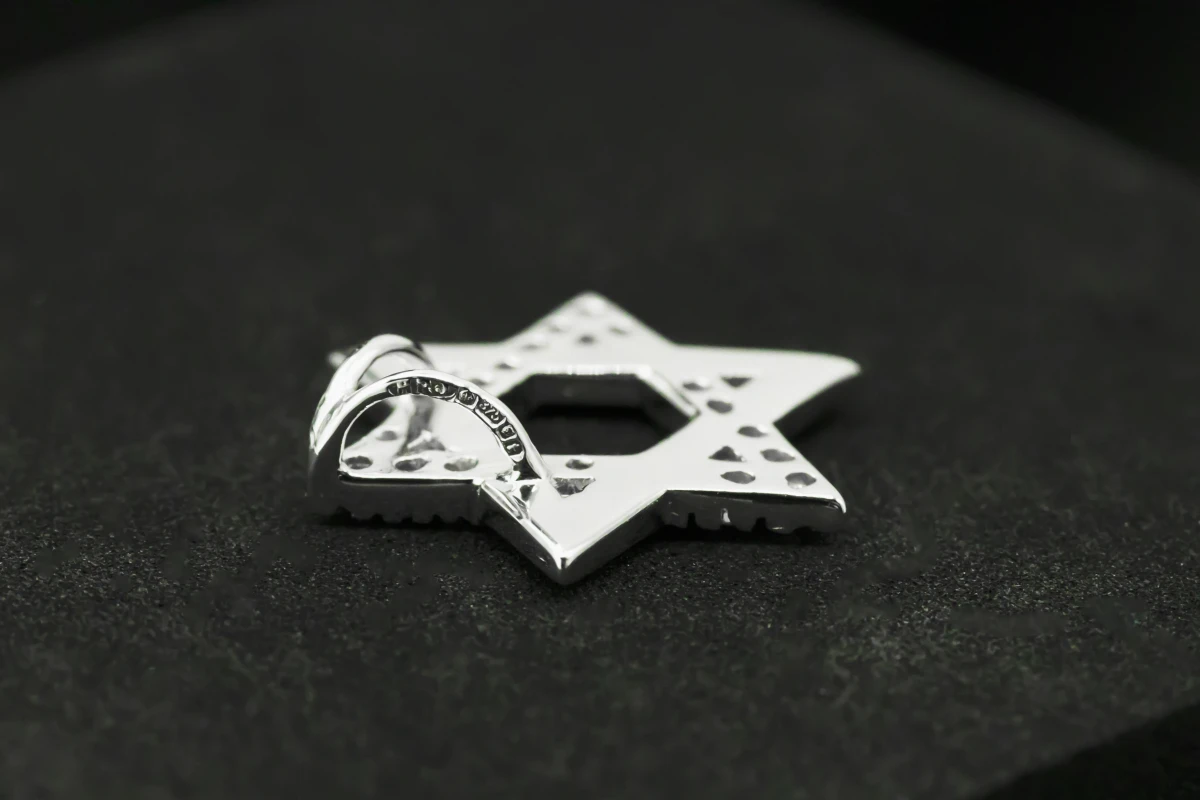 Crafted in elegant 9ct white gold, this Star of David pendant is set with 0.10ct of brilliant-cut diamonds in H SI quality, offering a subtle yet meaningful sparkle.