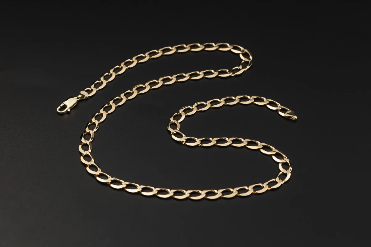 This bold and timeless 9ct yellow gold curb chain is crafted with a strong, solid link design, offering a substantial weight of 28.2g.