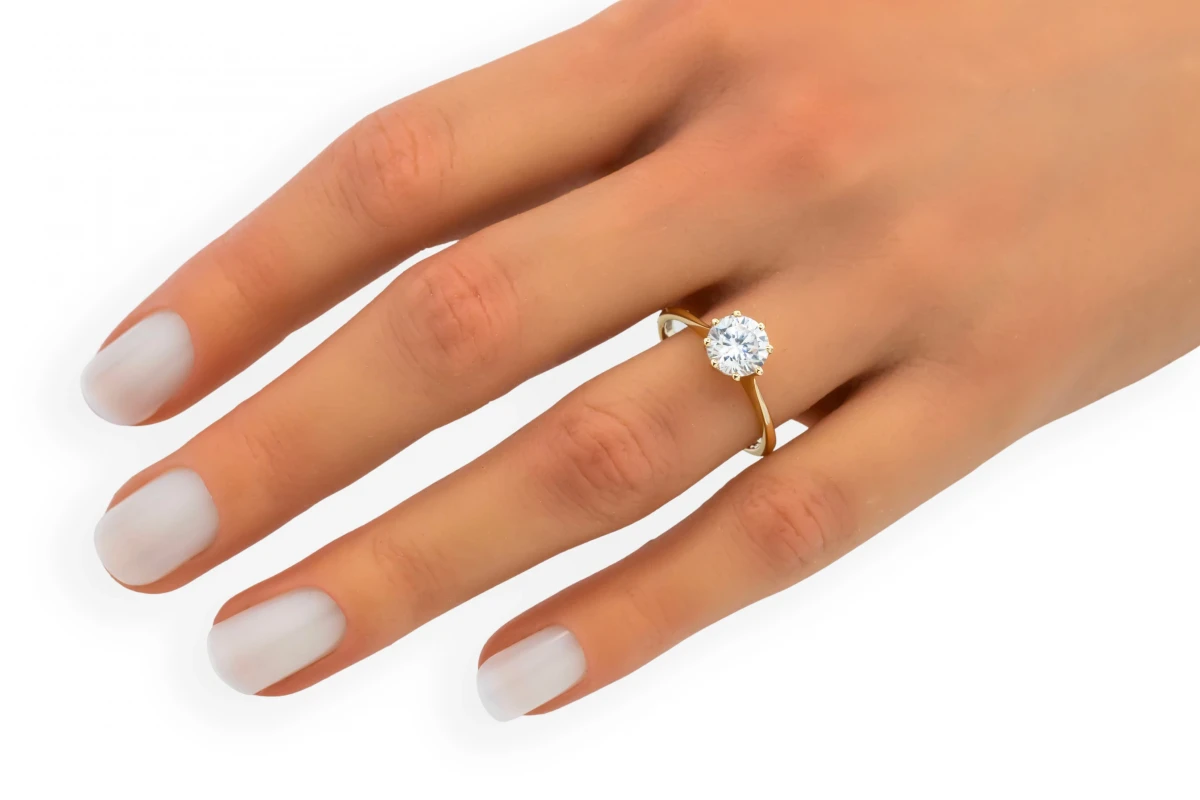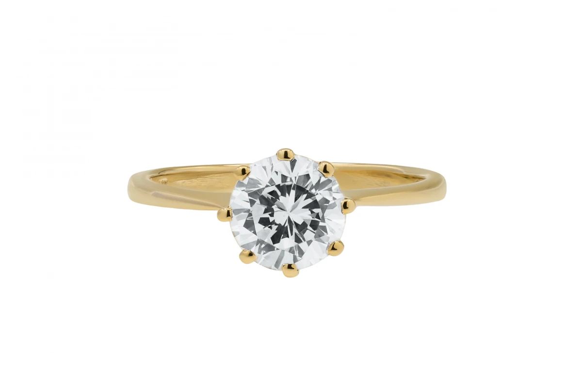 Celebrate timeless elegance with this 9ct yellow gold engagement ring, beautifully set with a sparkling cubic zirconia stone.