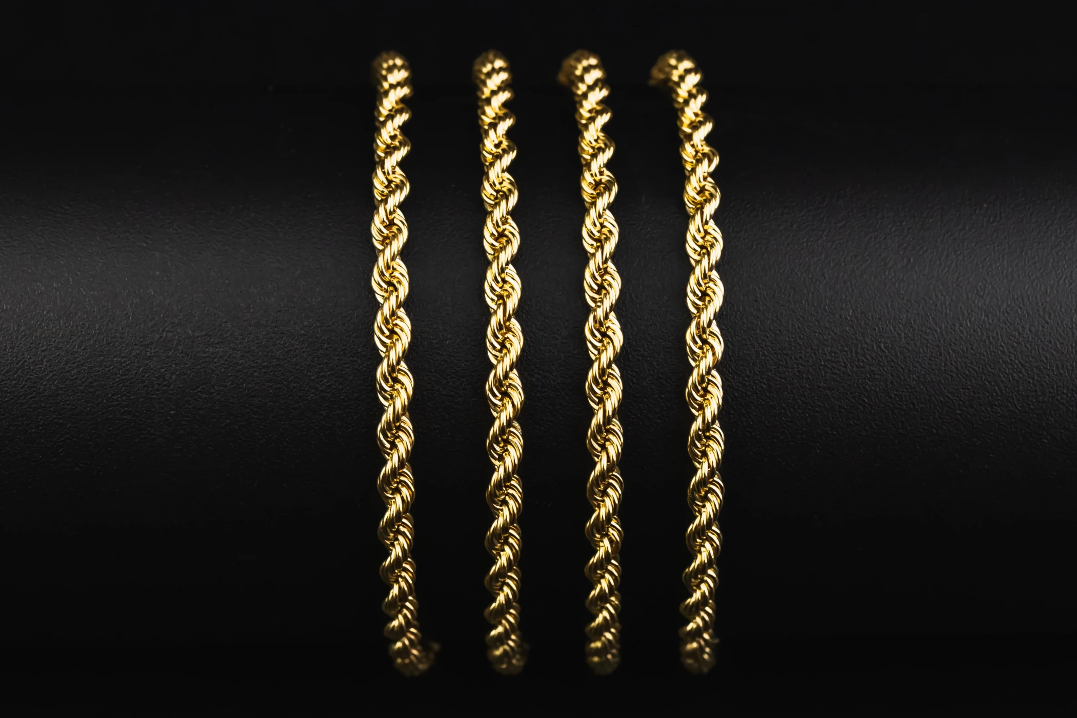 Weighing 7.1g, it offers a luxurious shine and comfortable fit, perfect for both everyday wear and special occasions. The timeless rope pattern adds texture and depth, making it an ideal standalone piece or the perfect complement to a pendant.