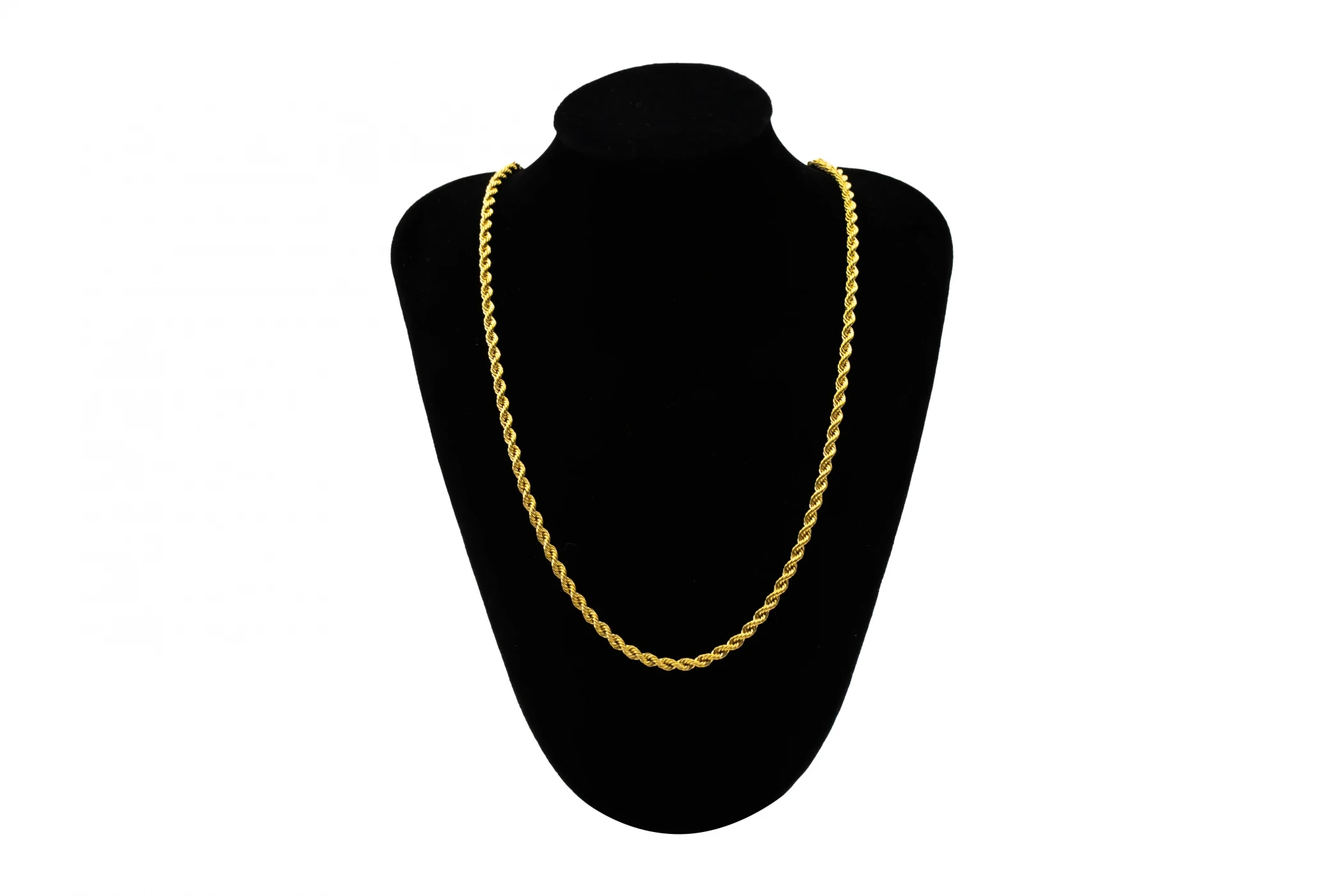 This classic 9ct yellow gold rope chain features a beautifully twisted design, measuring 3mm in width and 27.5 inches in length.