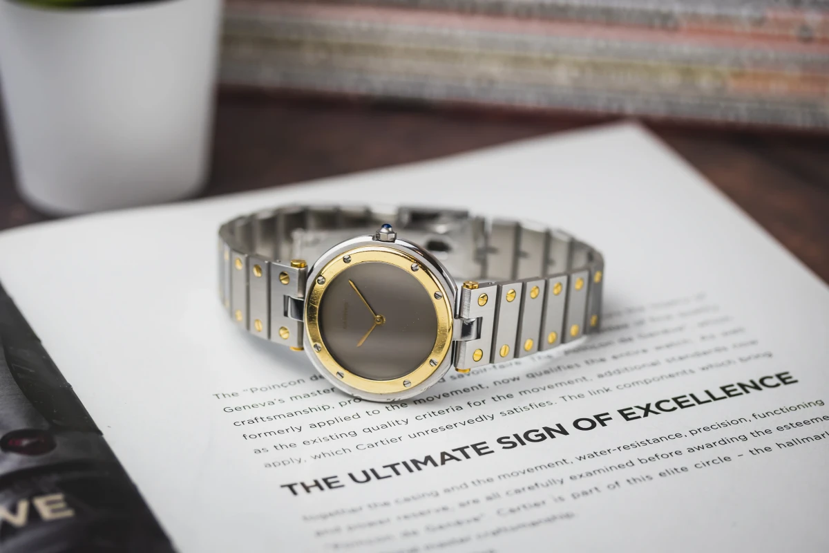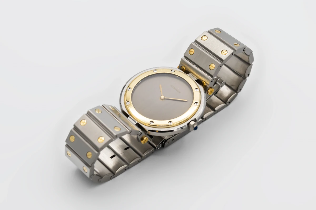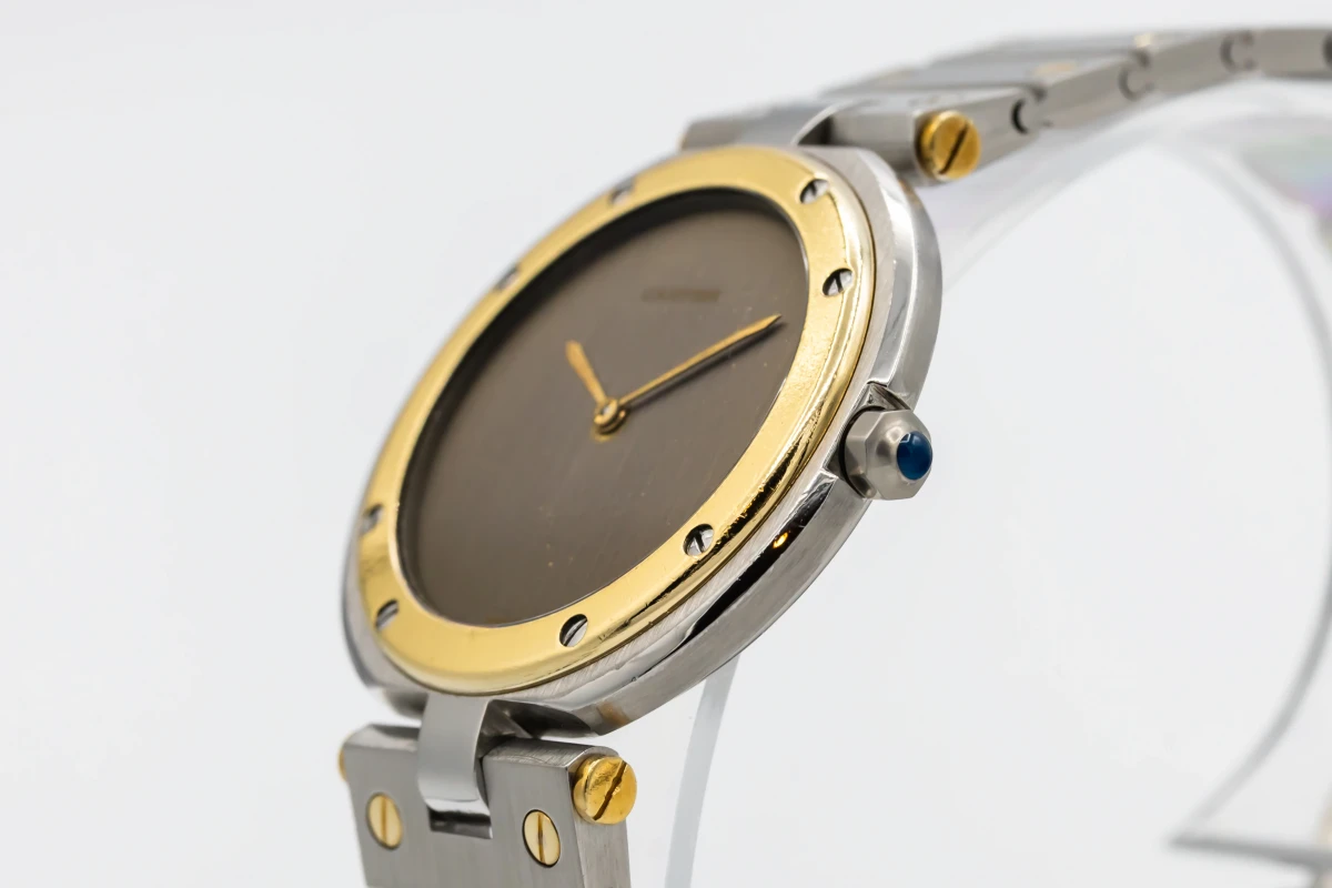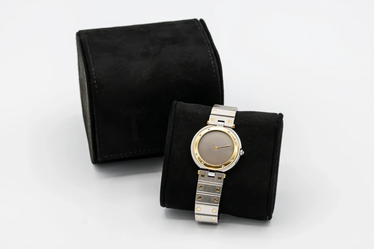 This circa 1990s Cartier Santos Vendome 27mm features a grey 'ghost' dial and a stainless steel and 18ct yellow gold bracelet. It also features a 18ct yellow gold bezel.