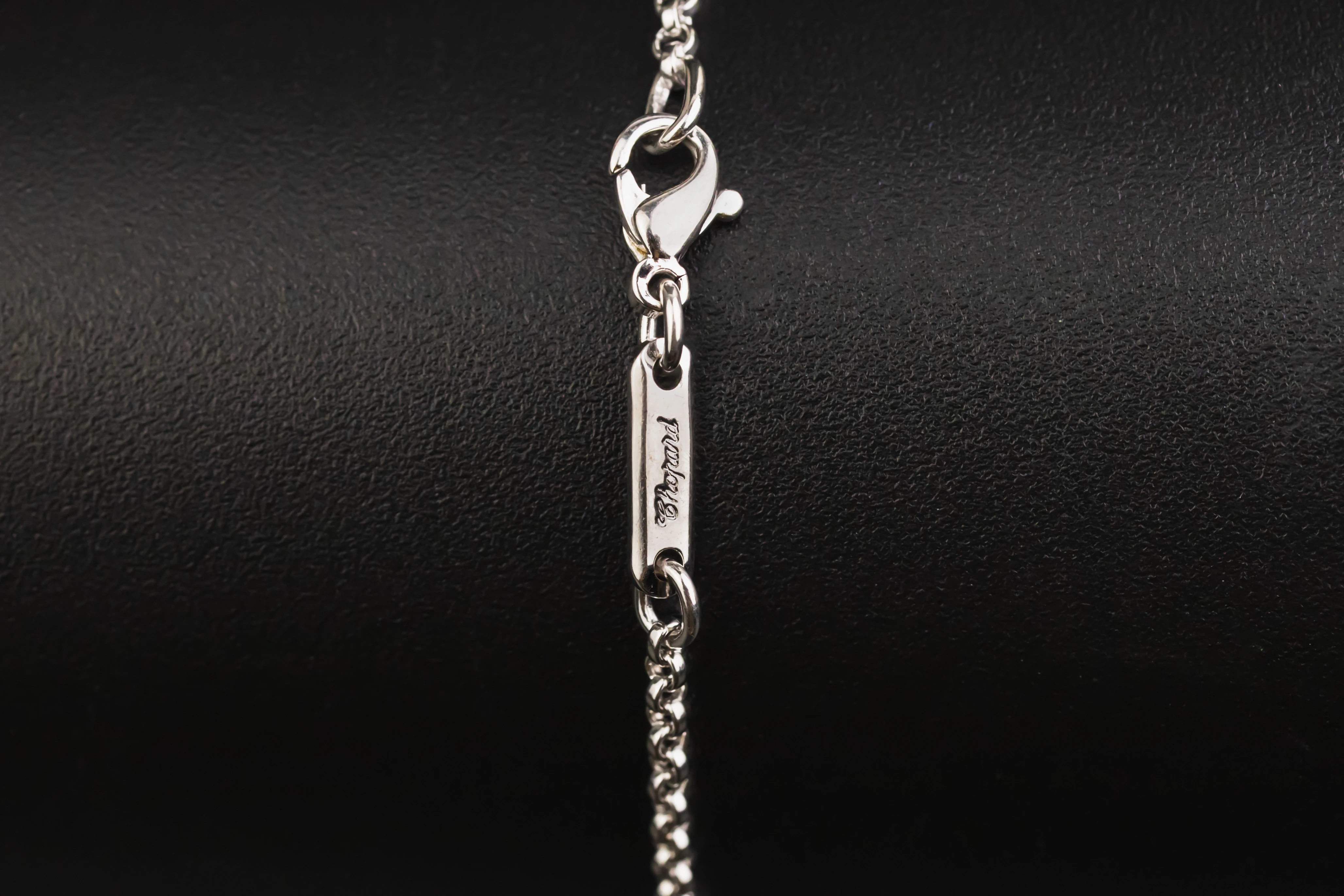 This sophisticated Chopard necklace is crafted in luxurious 18ct white gold and designed with a sleek link chain and pendant profile, offering a polished and timeless aesthetic. Measuring 14 inches and weighing 6.2g, it reflects the house’s commitment to precision, elegance, and refined craftsmanship.