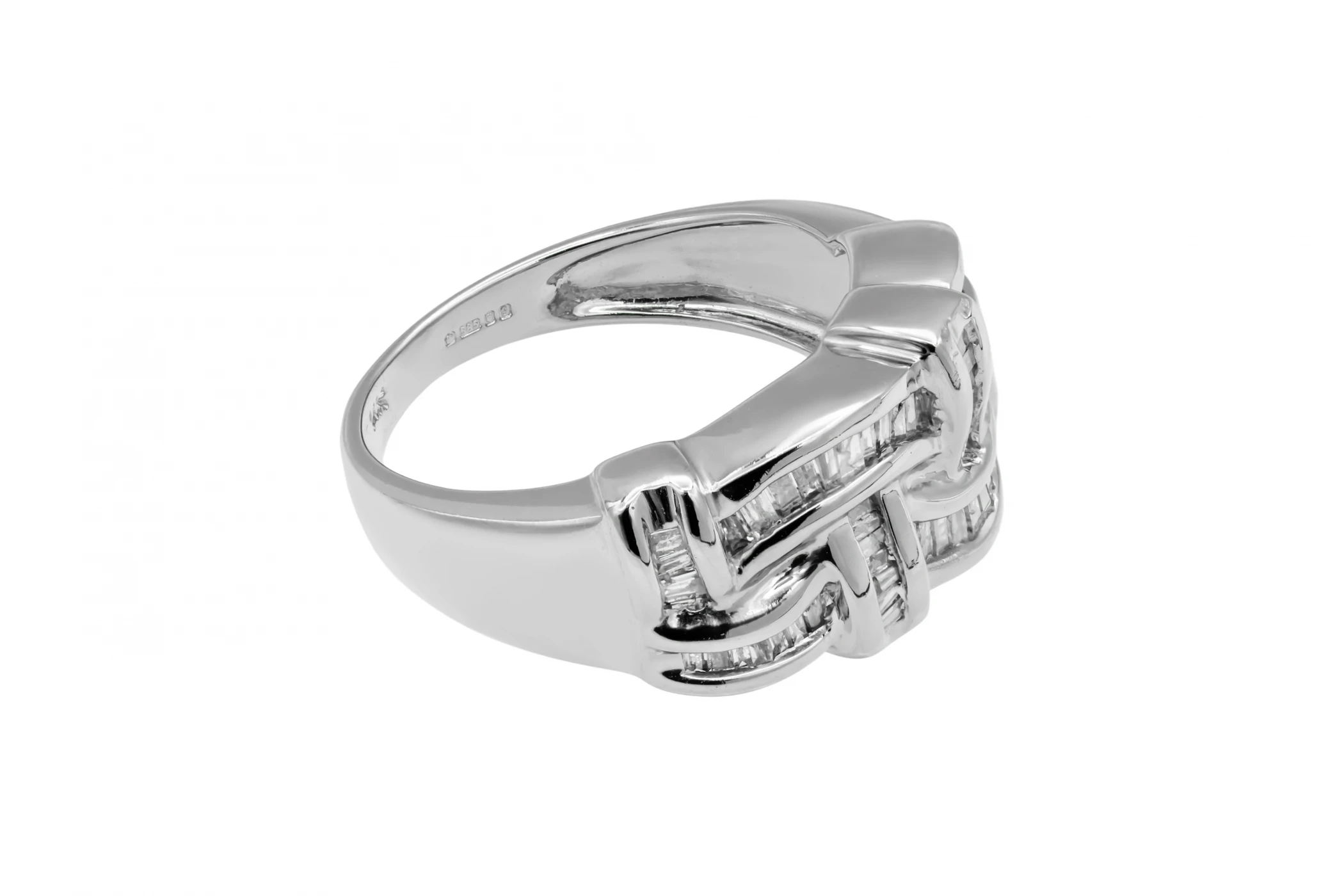 This striking 14ct white gold diamond channel set ring showcases sophisticated baguette cut diamonds totalling 0.48ct.