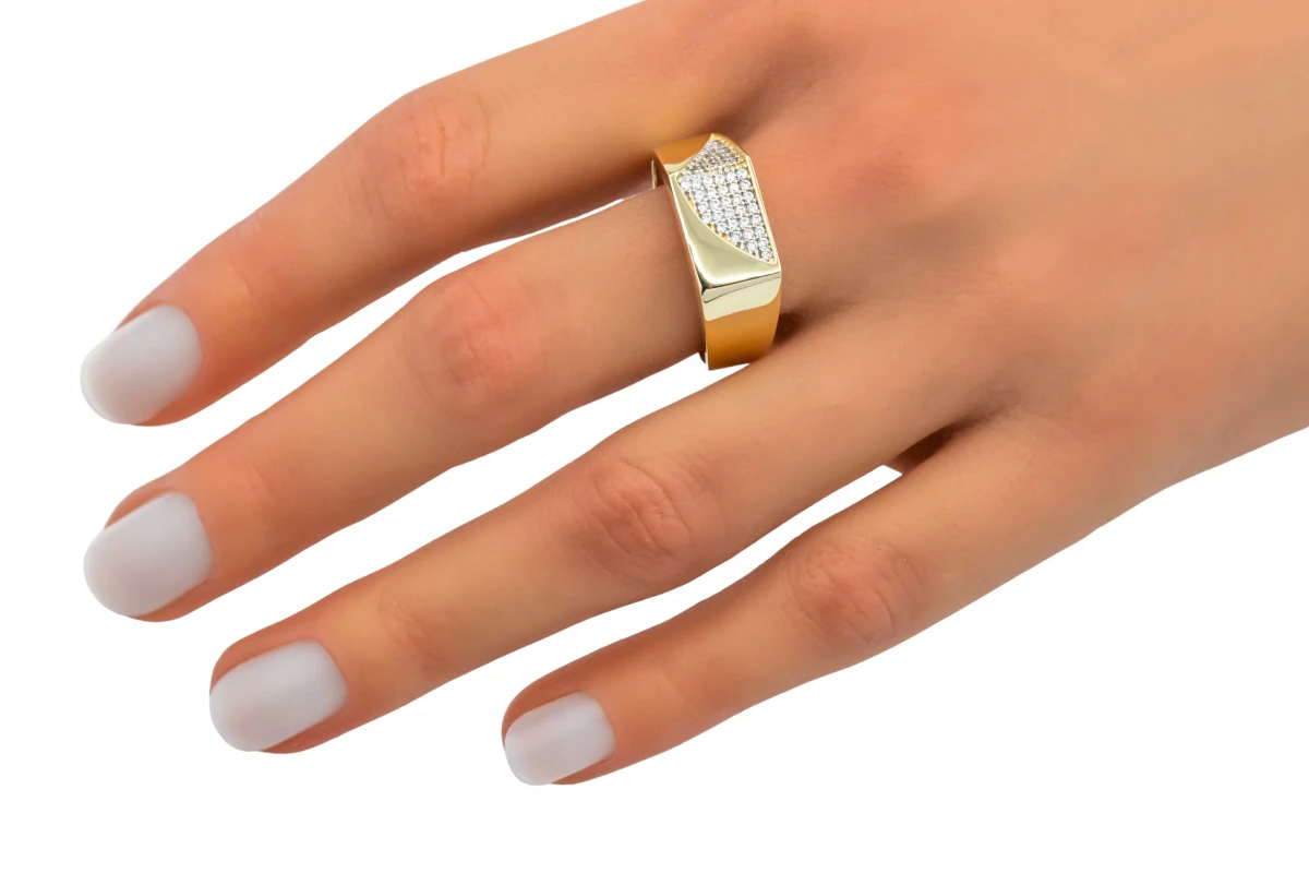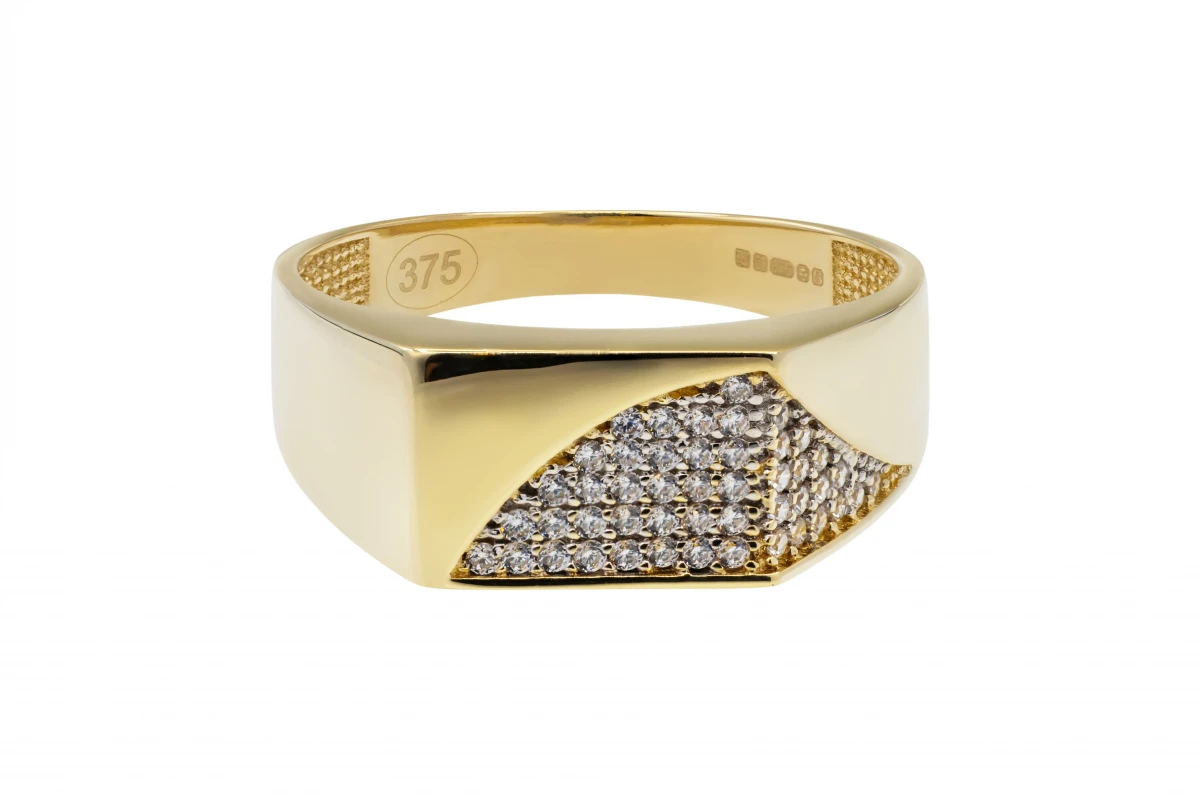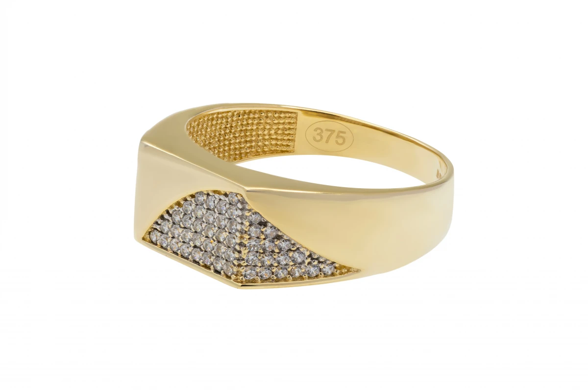 Make a bold yet elegant statement with this 9ct yellow gold cubic zirconia ring, weighing 3.9g and crafted in a size V.