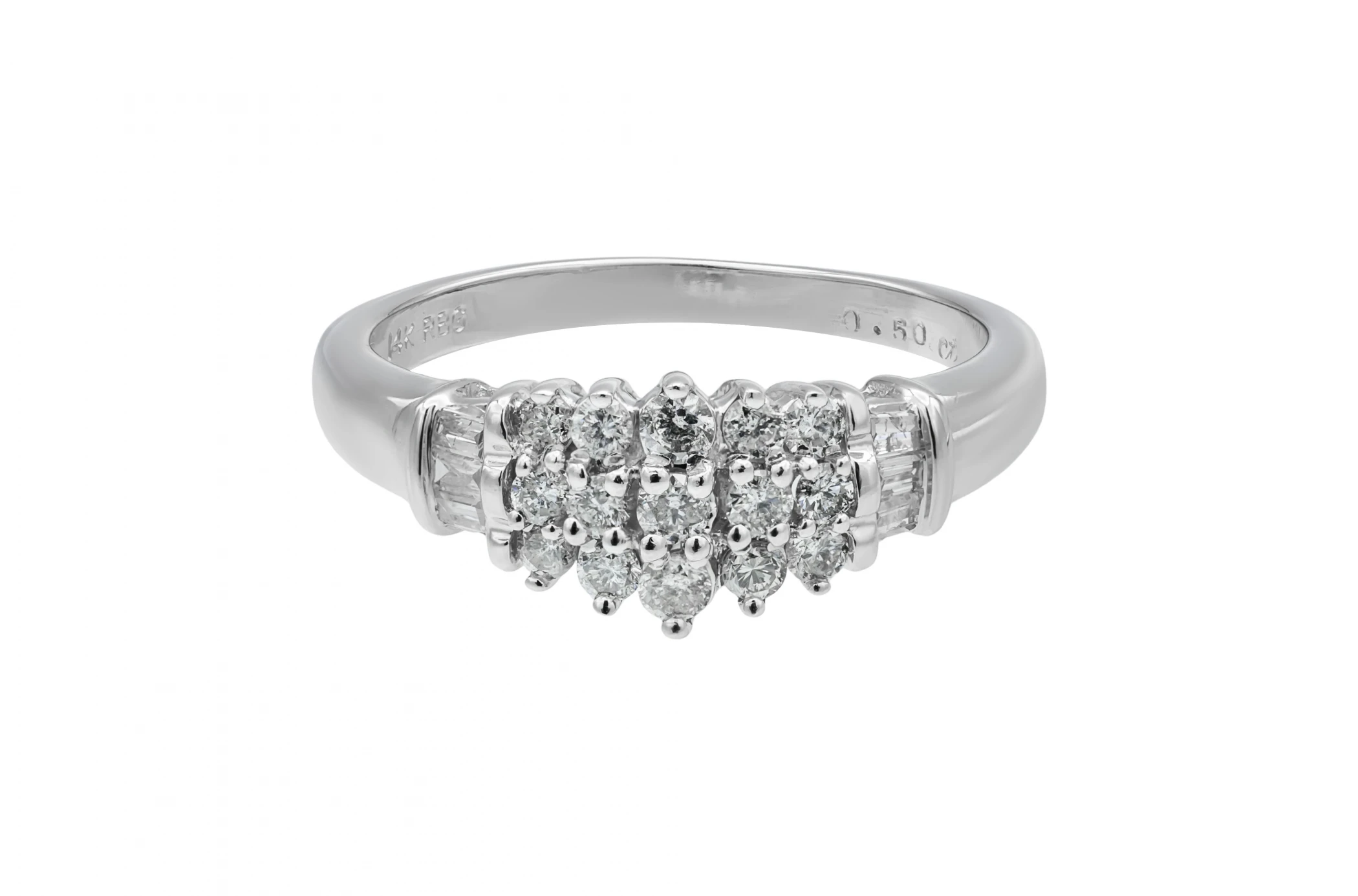 14ct White Gold Brilliant Round & Baguette Diamond Cluster Ring 0.50ct 3.6g