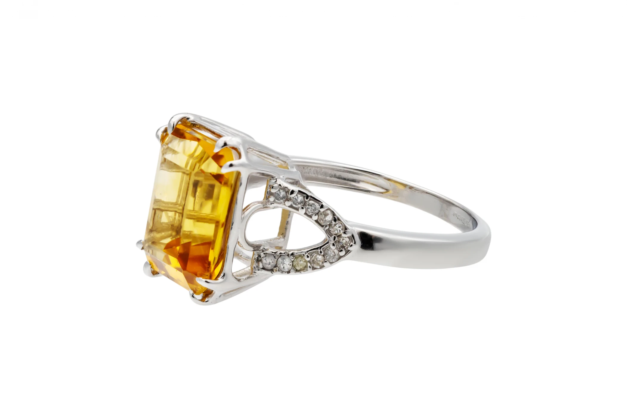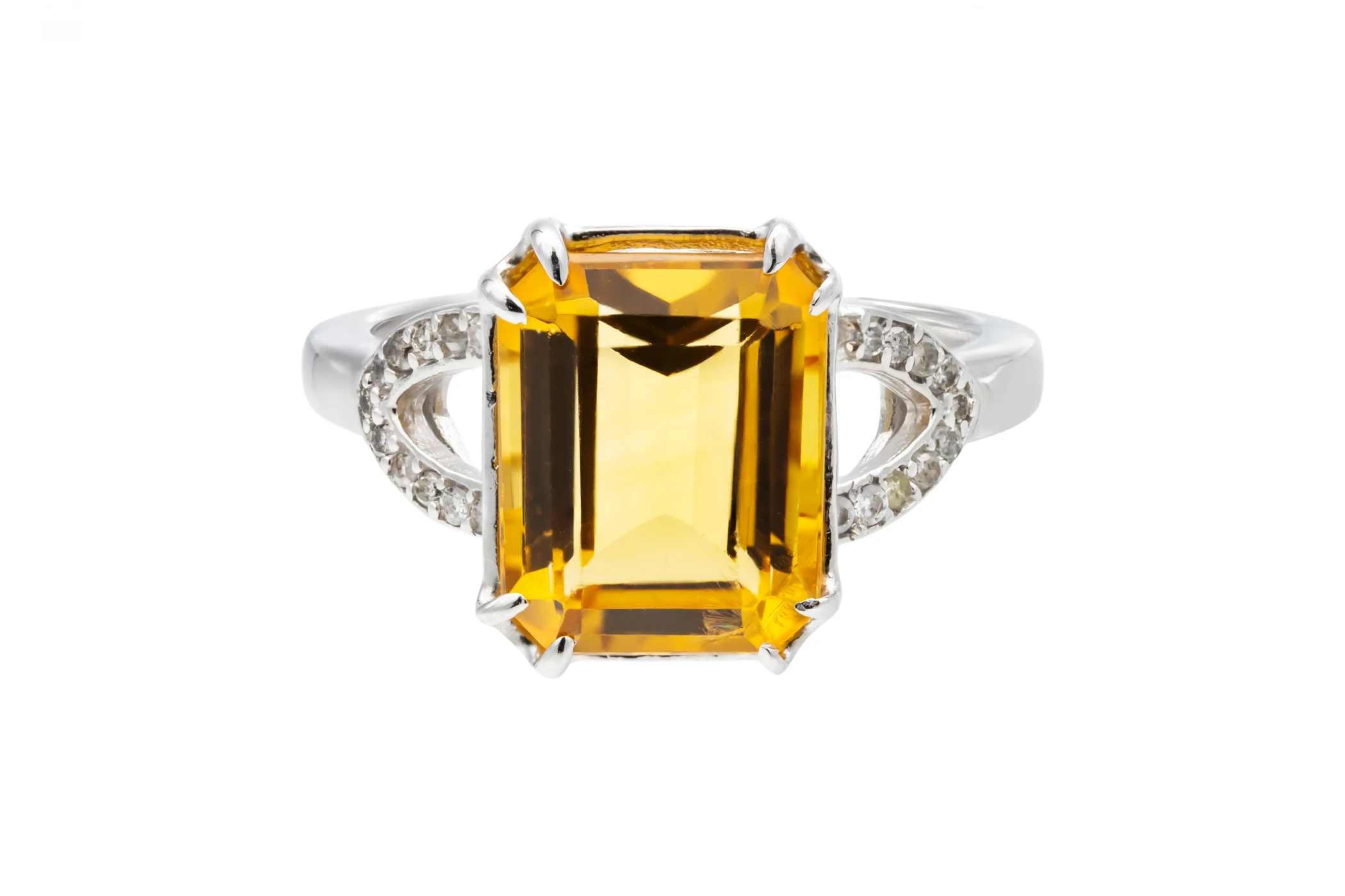 The warm golden tones of the citrine contrast beautifully with the cool white gold setting, creating a refined and timeless look.