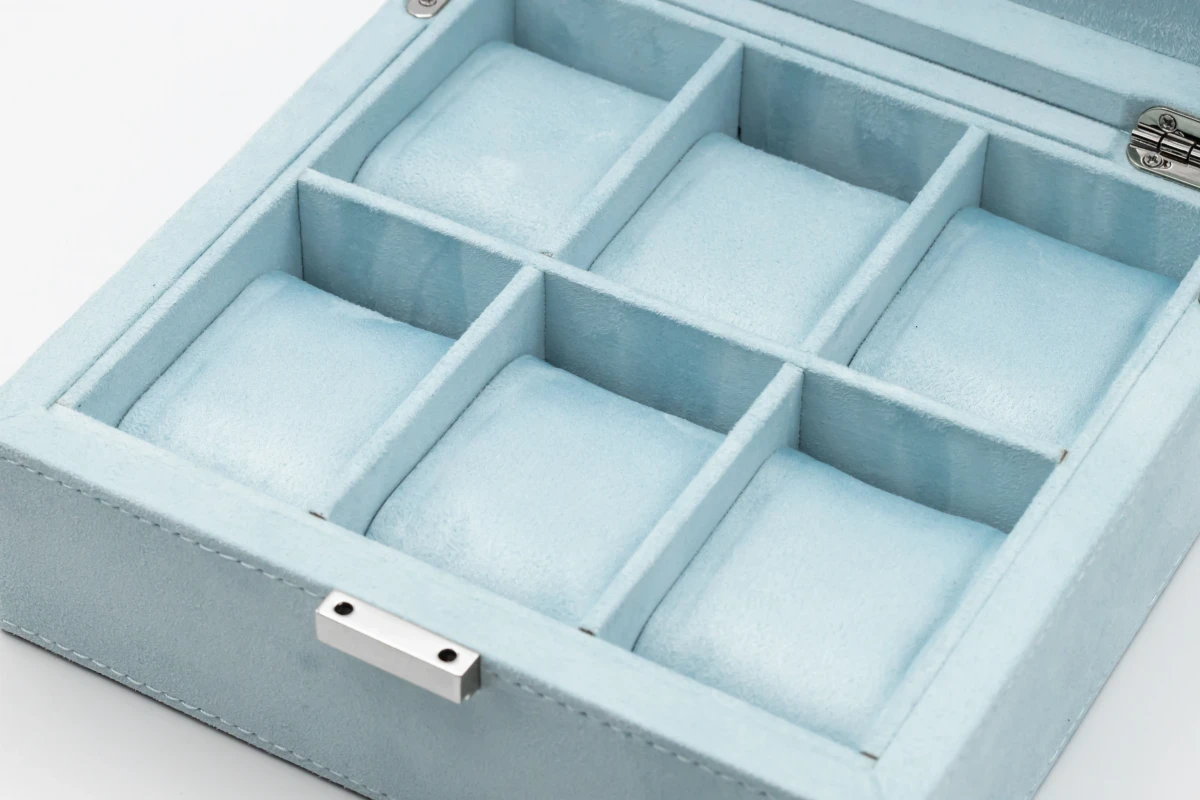 TDB Watch Storage Box - Sky Blue Velvet - 6 Watch Capacity