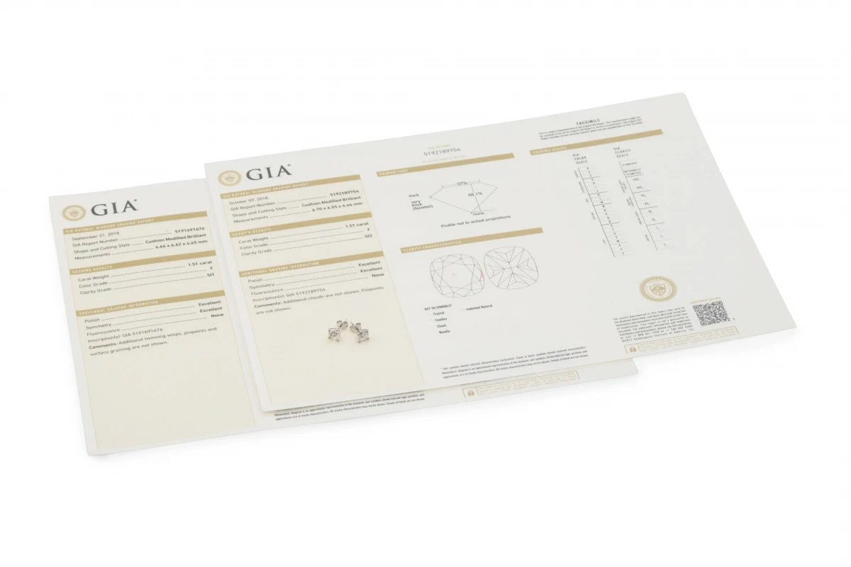 18ct White Gold Diamond Cushion Cut Stud Earrings 3.02ct GIA Certified
