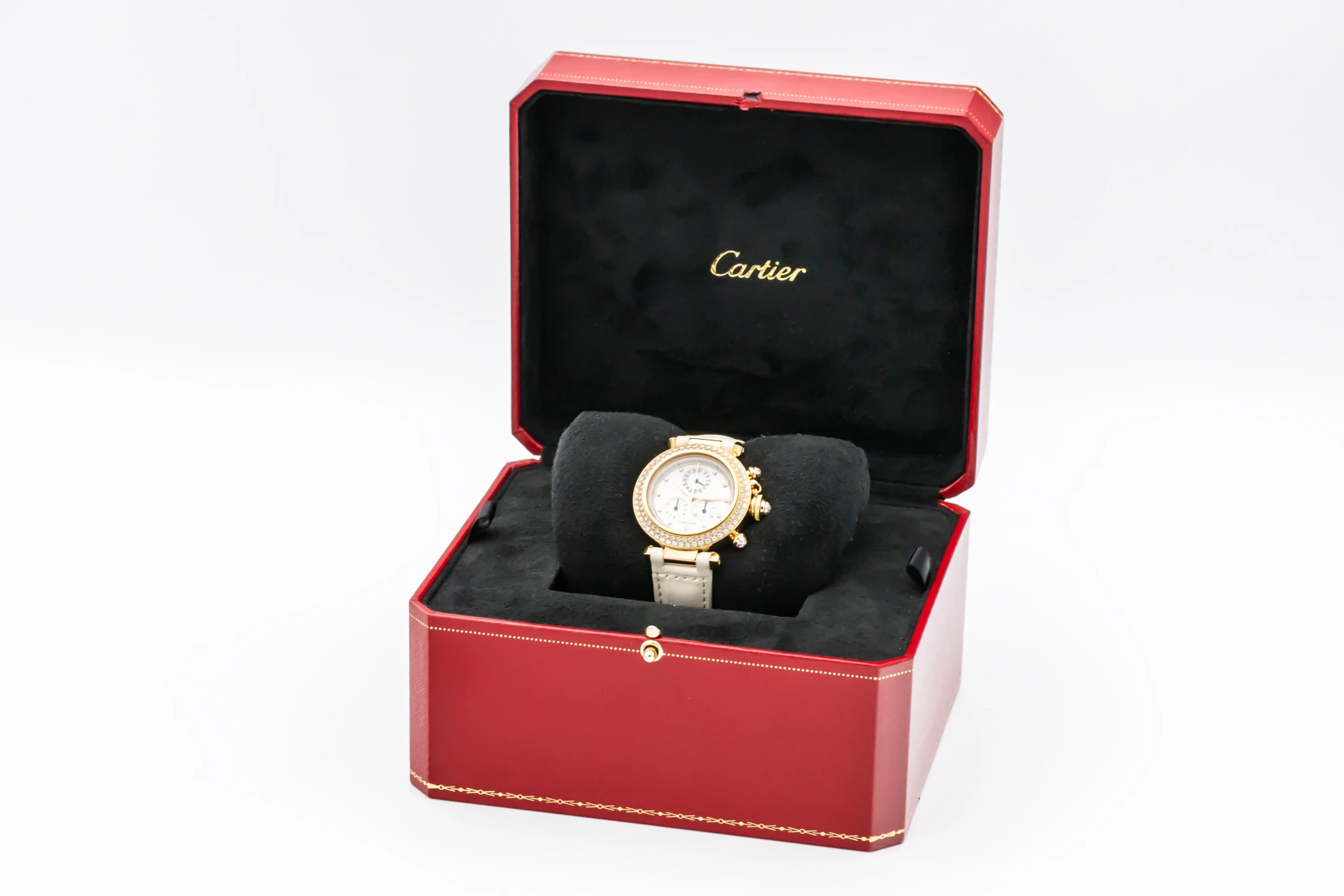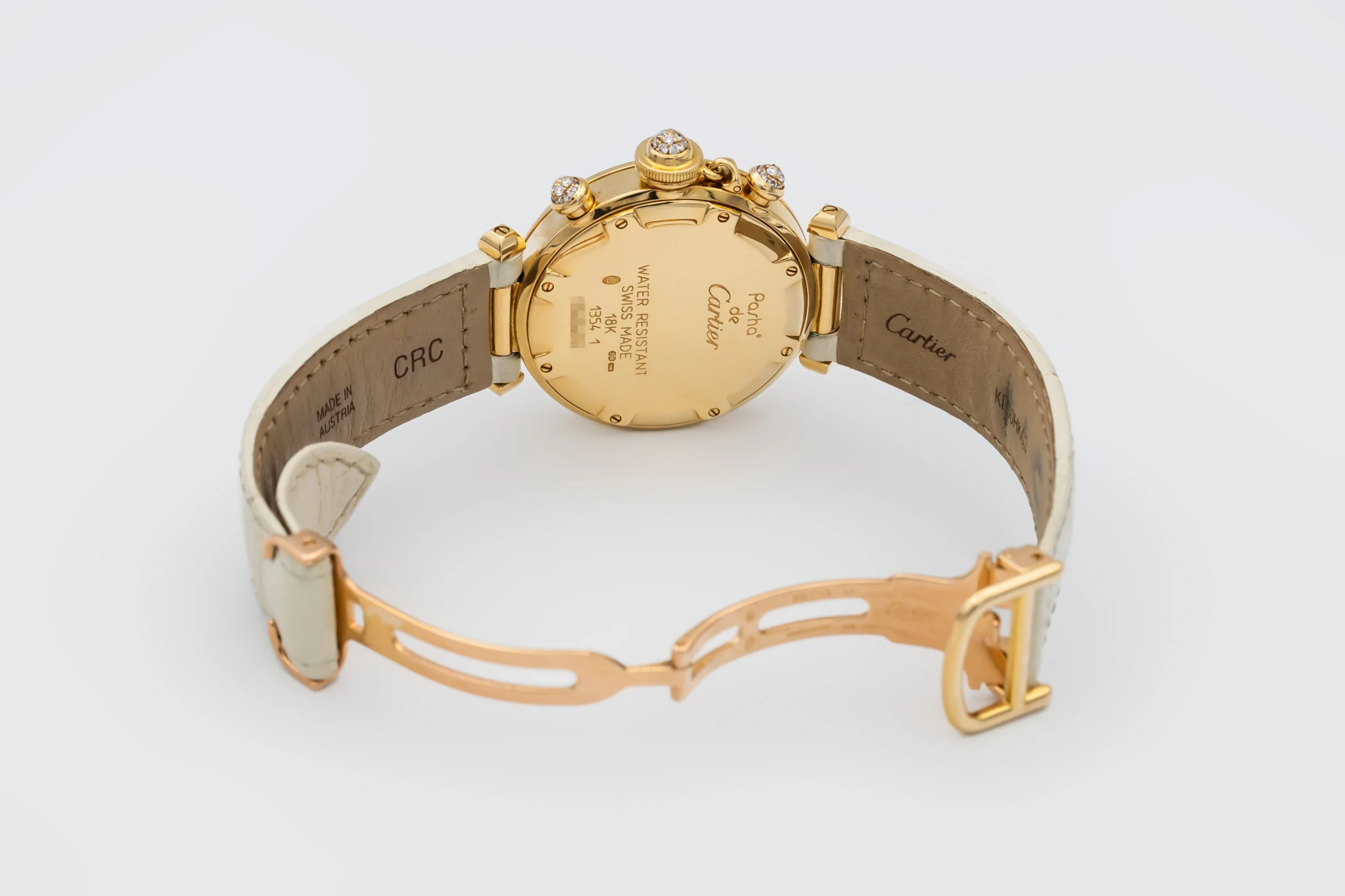 Cartier Pasha Chrono 35mm White Leather 1354-1 Circa 1990s