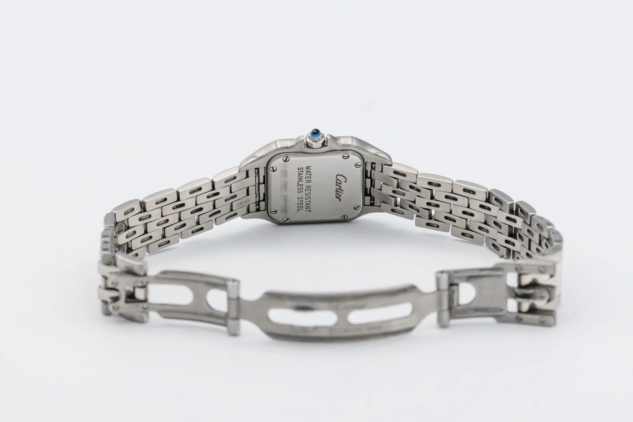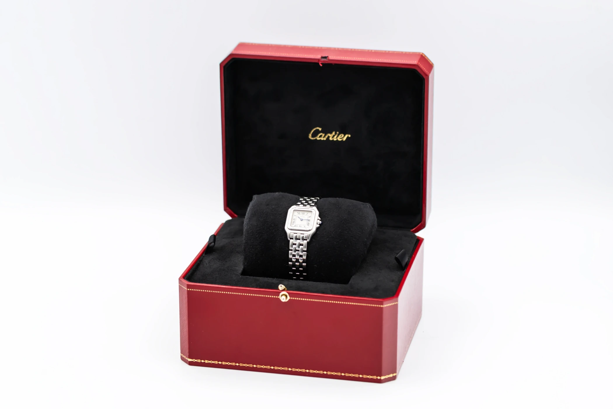 The Panthère de Cartier is a timeless design that reworks Cartier’s 1980s icon — elegant, bold and jewellery-inspired. Its aesthetic evokes the panther motif long associated with Cartier, while the W25033P5 (Ref. 1320) variant is a late-1990s to early-2000s “small” size (22 mm) quartz model, designed for women who favour both elegance and everyday wearability.
