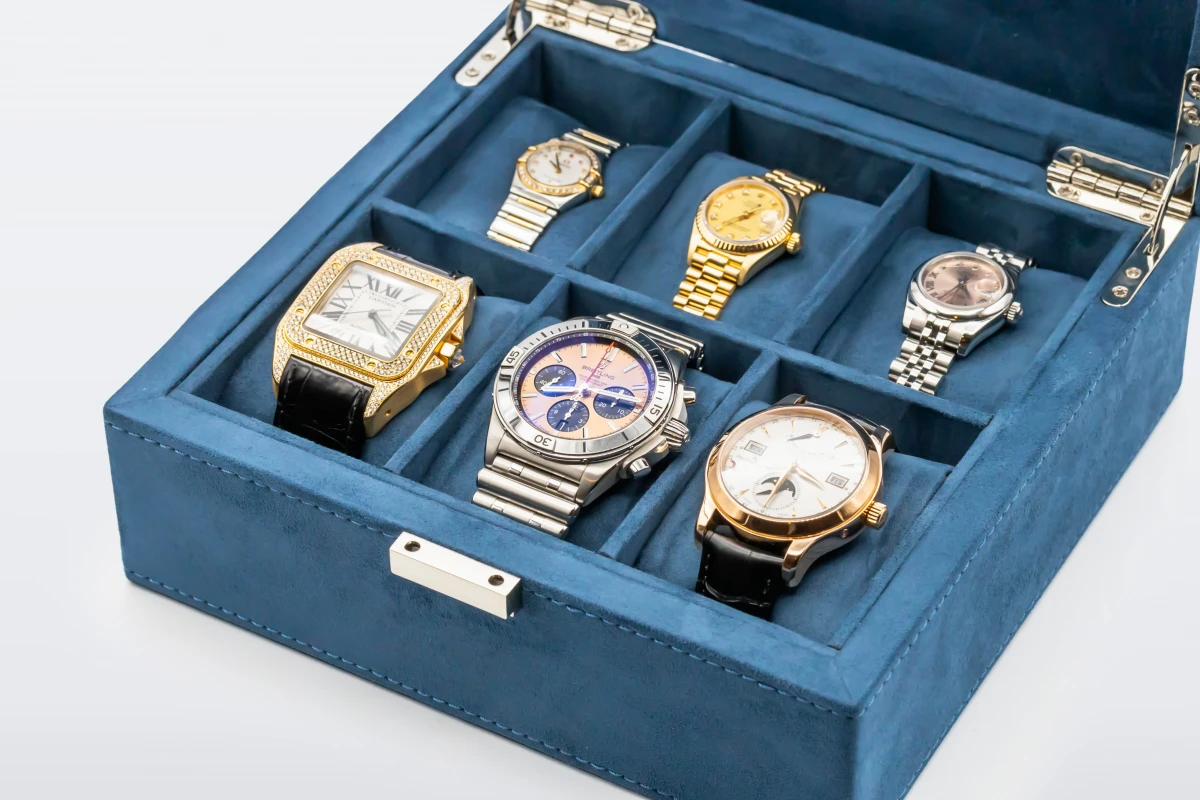 TDB Watch Storage Box - Navy Blue Velvet - 6 Watch Capacity