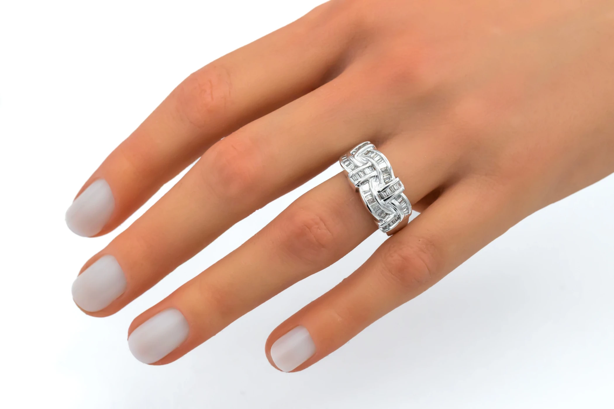 9ct White Gold Diamond Baguette Woven Design Ring 4.8g